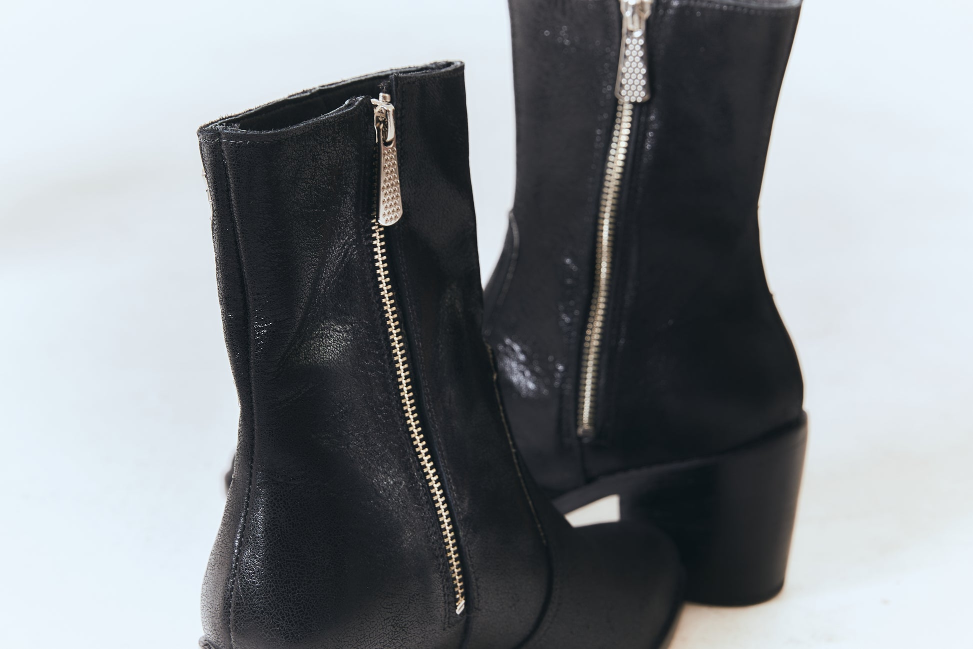 Botín de media caña confeccionado en 100% cuero natural chileno, con cierre lateral metálico y aplicaciones de estrellas en baño de níquel que le dan un toque moderno y distintivo. Hecho en Chile de forma 100% artesanal, cuidando cada detalle. Su taco de 4,5 cm ofrece la altura ideal para combinar comodidad y estilo, perfecto para looks urbanos y versátiles que funcionan todo el día.